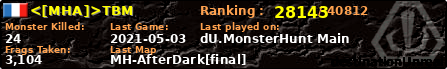 | Server | Map | LastGame | Score | Teamscore | Monsterleft | Deaths | Suicides | TKs | Distance | Playtime | |