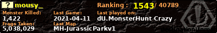 | Server | Map | LastGame | Score | Teamscore | Monsterleft | Deaths | Suicides | TKs | Distance | Playtime | |
