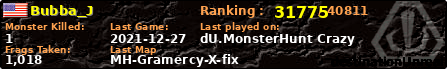 | Server | Map | LastGame | Score | Teamscore | Monsterleft | Deaths | Suicides | TKs | Distance | Playtime | |
