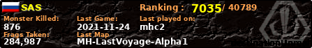 | Server | Map | LastGame | Score | Teamscore | Monsterleft | Deaths | Suicides | TKs | Distance | Playtime | |