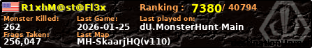 | Server | Map | LastGame | Score | Teamscore | Monsterleft | Deaths | Suicides | TKs | Distance | Playtime | |