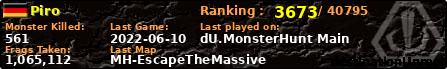 | Server | Map | LastGame | Score | Teamscore | Monsterleft | Deaths | Suicides | TKs | Distance | Playtime | |
