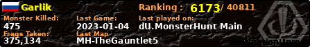 | Server | Map | LastGame | Score | Teamscore | Monsterleft | Deaths | Suicides | TKs | Distance | Playtime | |
