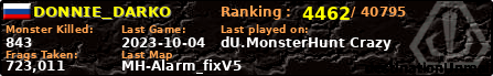 | Server | Map | LastGame | Score | Teamscore | Monsterleft | Deaths | Suicides | TKs | Distance | Playtime | |