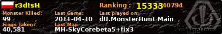 | Server | Map | LastGame | Score | Teamscore | Monsterleft | Deaths | Suicides | TKs | Distance | Playtime | |