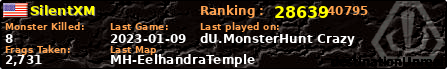 | Server | Map | LastGame | Score | Teamscore | Monsterleft | Deaths | Suicides | TKs | Distance | Playtime | |