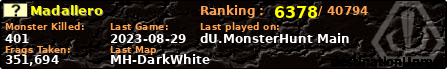 | Server | Map | LastGame | Score | Teamscore | Monsterleft | Deaths | Suicides | TKs | Distance | Playtime | |