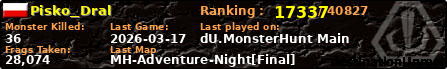 | Server | Map | LastGame | Score | Teamscore | Monsterleft | Deaths | Suicides | TKs | Distance | Playtime | |