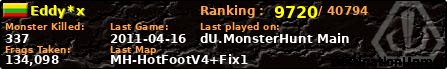 | Server | Map | LastGame | Score | Teamscore | Monsterleft | Deaths | Suicides | TKs | Distance | Playtime | |