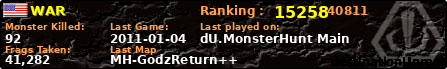 | Server | Map | LastGame | Score | Teamscore | Monsterleft | Deaths | Suicides | TKs | Distance | Playtime | |