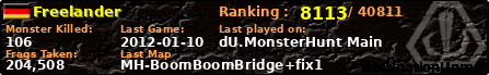 | Server | Map | LastGame | Score | Teamscore | Monsterleft | Deaths | Suicides | TKs | Distance | Playtime | |