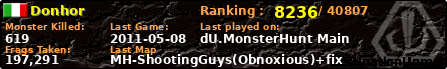 | Server | Map | LastGame | Score | Teamscore | Monsterleft | Deaths | Suicides | TKs | Distance | Playtime | |
