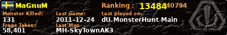 | Server | Map | LastGame | Score | Teamscore | Monsterleft | Deaths | Suicides | TKs | Distance | Playtime | |