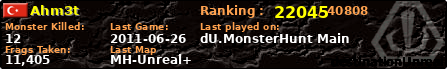 | Server | Map | LastGame | Score | Teamscore | Monsterleft | Deaths | Suicides | TKs | Distance | Playtime | |