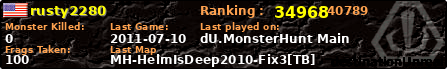 | Server | Map | LastGame | Score | Teamscore | Monsterleft | Deaths | Suicides | TKs | Distance | Playtime | |