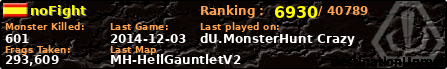 noFight | | PlayerID: | 5377 | | Overall MHT: | 293,609 | | Overall Deaths: | 74 | | Overall Suicides: | 0 | | Overall TeamKills: | 0 | | Overall Distance traveled: | 52km | | Overall Time Spend on Server: | 00days 04h 01m 59s | | Maps Played: | 16 | | Firstgame: | 2011-07-17 02:46:44 | | LastGame: | 2014-12-03 23:46:29 | | Player Ranking Place: | 6930 | | Used Playernames: | noFight