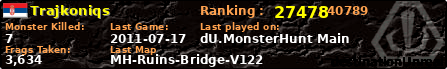 | Server | Map | LastGame | Score | Teamscore | Monsterleft | Deaths | Suicides | TKs | Distance | Playtime | |