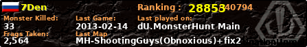 | Server | Map | LastGame | Score | Teamscore | Monsterleft | Deaths | Suicides | TKs | Distance | Playtime | |