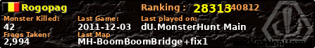 | Server | Map | LastGame | Score | Teamscore | Monsterleft | Deaths | Suicides | TKs | Distance | Playtime | |