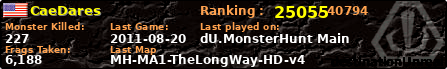 | Server | Map | LastGame | Score | Teamscore | Monsterleft | Deaths | Suicides | TKs | Distance | Playtime | |