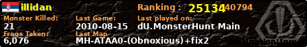 | Server | Map | LastGame | Score | Teamscore | Monsterleft | Deaths | Suicides | TKs | Distance | Playtime | |