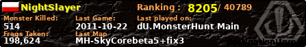 | Server | Map | LastGame | Score | Teamscore | Monsterleft | Deaths | Suicides | TKs | Distance | Playtime | |