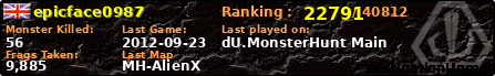 | Server | Map | LastGame | Score | Teamscore | Monsterleft | Deaths | Suicides | TKs | Distance | Playtime | |