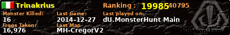 | Server | Map | LastGame | Score | Teamscore | Monsterleft | Deaths | Suicides | TKs | Distance | Playtime | |