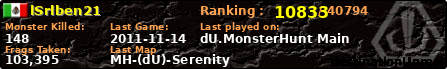 | Server | Map | LastGame | Score | Teamscore | Monsterleft | Deaths | Suicides | TKs | Distance | Playtime | |