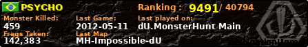 | Server | Map | LastGame | Score | Teamscore | Monsterleft | Deaths | Suicides | TKs | Distance | Playtime | |