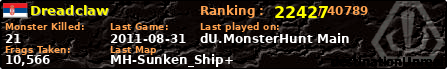 | Server | Map | LastGame | Score | Teamscore | Monsterleft | Deaths | Suicides | TKs | Distance | Playtime | |