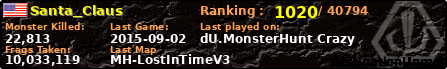 Santa_Claus | | PlayerID: | 7975 | | Overall MHT: | 10,033,119 | | Overall Deaths: | 2205 | | Overall Suicides: | 50 | | Overall TeamKills: | 26 | | Overall Distance traveled: | 1,724km | | Overall Time Spend on Server: | 06days 03h 09m 30s | | Maps Played: | 533 | | Firstgame: | 2012-01-09 01:55:42 | | LastGame: | 2015-09-02 04:37:53 | | Player Ranking Place: | 1020 | | Used Playernames: | Santa_Claus Buelligan Boy_Cat Herbert_J._Doobie ADVrider AHM3T_is_GAY CPT_Caveman The_Magnificent_Noob