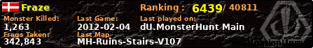 Fraze | | PlayerID: | 8188 | | Overall MHT: | 342,843 | | Overall Deaths: | 63 | | Overall Suicides: | 0 | | Overall TeamKills: | 1 | | Overall Distance traveled: | 58km | | Overall Time Spend on Server: | 00days 04h 25m 10s | | Maps Played: | 15 | | Firstgame: | 2012-01-25 18:42:31 | | LastGame: | 2012-02-04 12:55:12 | | Player Ranking Place: | 6439 | | Used Playernames: | Fraze