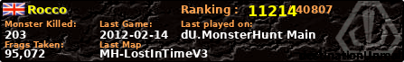 Rocco | | PlayerID: | 8412 | | Overall MHT: | 95,072 | | Overall Deaths: | 89 | | Overall Suicides: | 0 | | Overall TeamKills: | 0 | | Overall Distance traveled: | 51km | | Overall Time Spend on Server: | 00days 03h 34m 19s | | Maps Played: | 20 | | Firstgame: | 2012-02-11 17:11:53 | | LastGame: | 2012-02-14 21:06:06 | | Player Ranking Place: | 11214 | | Used Playernames: | Rocco