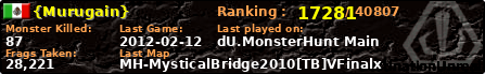 | Server | Map | LastGame | Score | Teamscore | Monsterleft | Deaths | Suicides | TKs | Distance | Playtime | |