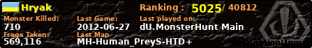 Hryak | | PlayerID: | 8751 | | Overall MHT: | 569,116 | | Overall Deaths: | 36 | | Overall Suicides: | 0 | | Overall TeamKills: | 2 | | Overall Distance traveled: | 60km | | Overall Time Spend on Server: | 00days 05h 09m 49s | | Maps Played: | 17 | | Firstgame: | 2012-03-07 15:23:47 | | LastGame: | 2012-06-27 19:44:30 | | Player Ranking Place: | 5025 | | Used Playernames: | Hryak
