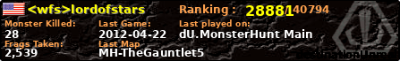 | Server | Map | LastGame | Score | Teamscore | Monsterleft | Deaths | Suicides | TKs | Distance | Playtime | |