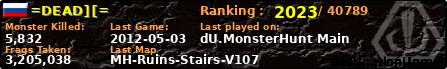 =DEAD][= | | PlayerID: | 9080 | | Overall MHT: | 3,205,038 | | Overall Deaths: | 102 | | Overall Suicides: | 2 | | Overall TeamKills: | 1 | | Overall Distance traveled: | 164km | | Overall Time Spend on Server: | 00days 16h 34m 45s | | Maps Played: | 55 | | Firstgame: | 2012-04-06 09:26:36 | | LastGame: | 2012-05-03 20:19:04 | | Player Ranking Place: | 2023 | | Used Playernames: | =DEAD][= !DEAD_[RUS]_