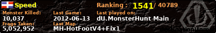 Speed | | PlayerID: | 9441 | | Overall MHT: | 5,052,952 | | Overall Deaths: | 703 | | Overall Suicides: | 26 | | Overall TeamKills: | 11 | | Overall Distance traveled: | 744km | | Overall Time Spend on Server: | 02days 06h 56m 02s | | Maps Played: | 206 | | Firstgame: | 2012-05-09 17:01:00 | | LastGame: | 2012-06-13 23:38:57 | | Player Ranking Place: | 1541 | | Used Playernames: | Speed Blunt App Baby;Girl:* OUT Blunt... Burro.aka.CN Speed_G DognskyInDaHouse Prestige